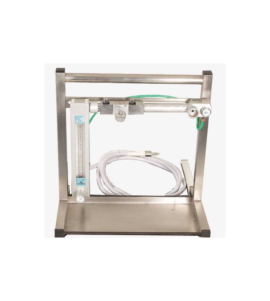 Prosty, kompaktowy i wytrzymały aparaty do znieczulenia dla weterynarii. Do zastosowania jako przenośno-naścienny aparat. Solidna konstrukcja, rama ze stali nierdzewnej i tacy na instrumenty.