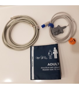 Monitor pacjenta zawiera komplet nowych akcesorii: czujnik saturacji typu klips lub soft (do wyboru), przewód z mankietem NIBP (rozmiar dla dorosłych 25-25 cm lub pediatryczny - do wyboru).